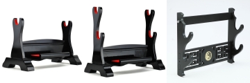 Two very elegant sword stands - photo shows the double but the single is also excellent. Both pieces are simply constructed of very pleasing wood, assembly was easy and took only a minute or two. I am very happy with both these pieces and would recommend them. They may have been designed for katana, but I use them exclusively for Chinese dao and jian swords, and they are perfect for these.