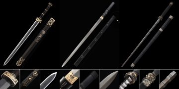 Longquan tradition sword collectibles in this collection use high-carbon steel grades that reflect the material standards historically associated with the tradition's quality reputation. Manganese Steel delivers the exceptional surface hardness and consistent finish quality that Longquan-tradition blades are known for - the refined surface of a well-finished Manganese Steel Longquan sword is immediately distinguishable from lower-quality production. 1095 carbon steel with high carbon content is used in premium jian pieces, providing the blade hardness and surface quality appropriate to a high-standard jian in the Longquan tradition. Damascus steel Longquan pieces reference the layered steel techniques that have been part of Chinese blade-making history since the Han Dynasty, expressed through the fold-forged patterning visible on the drawn blade. All grades use full-tang construction with the blade steel running from tip through the complete handle. The consistent quality standards applied across steel grades reflect the Longquan tradition's historical emphasis on material quality and construction integrity.
