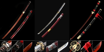 T10 carbon steel katana with a dark red lacquer saya — each piece in this collection is hand-forged, clay tempered, and finished with a genuine hamon that reflects the tradition of Japanese blade-making. From lotus and chrysanthemum tsuba to demon and lion guard designs, every detail is chosen to reward the discerning collector. Explore a curated selection of full-tang, display-ready katana that make equally striking gifts. Free standard shipping on all orders, with hassle-free returns.