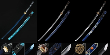Handmade Japanese Samurai Sword With Blue Blade And Scabbard |