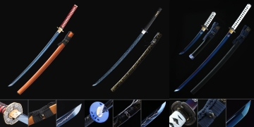 Black Blade Katana Sword - 1045 Manganese Steel with Orchid Alloy Tsuba in Full Tang Design |