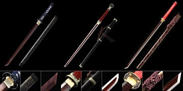 Each Red Blade Damascus Steel Katana in this collection is hand-forged from layered Damascus steel, producing a blade with a deeply patterned surface and a striking crimson finish that sets it apart from conventional katana styles. Mountings range from python-theme saya and geisha-painted scabbards to dragon tsuba and starfield lacquerwork, giving every piece a distinct visual identity worthy of serious display. Free standard shipping is included on all orders, and we stand behind every collectible with a hassle-free return policy.
