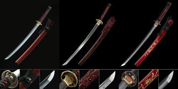A geisha doll becomes even more compelling when placed within a thoughtfully curated display environment. The red kimono provides a strong color anchor - build outward by incorporating complementary pieces that echo the same palette. Mounted Japanese sword displays, such as a Red Saya Tanto or a Red Sageo Ninjato on a horizontal rack, extend the red motif while adding dimensionality and cultural breadth to the arrangement. Use varied heights: a tall geisha sculpture at center, a horizontal blade mount at mid-level, and smaller decorative items - lacquerware, bonsai, folded textiles - at the base. Black or natural wood display surfaces provide contrast that allows the red elements to remain visually dominant. Enclosed glass cases protect delicate fabric and painted surfaces while framing the collection as a deliberate, museum-quality presentation.