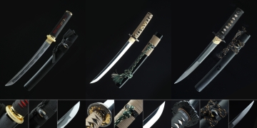 1060 Carbon Steel Tanto in Blue Blade with Black Lacquer Saya and Gold Tsuba |