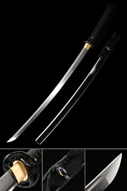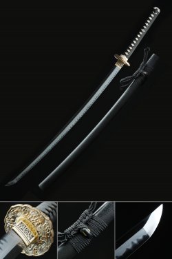 - Piano lacquer black hardwood saya with a glossy, mirror-like surface that elevates this katana above standard matte-finish scabbard designs