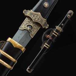 This battle-ready black han dynasty swords is made of spring steel, designed to be perfect for practical Chinese martial arts training. The blade is specially treated to achieve optimal levels of durability and hardness. Traditional design with modern construction, this is not your average wushu sword. It is a weighty sword with a hand-sharpened edge for practical use, or for serious collectors and Chinese history enthusiasts. It comes with an exquisite hardwood scabbard and high-quality fittings. The sword is great for tai chi, kung fu, wushu, cutting practice, and display. It's durable enough for trees and bamboo. Each sword is individually handmade so specifications vary slightly from sword to sword. notes: not include stand. ...