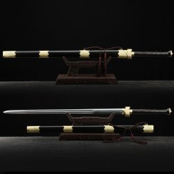 This battle-ready bronze han dynasty swords is made of pattern steel, designed to be perfect for practical Chinese martial arts training. The blade is specially treated to achieve optimal levels of durability and hardness. Traditional design with modern construction, this is not your average wushu sword. It is a weighty sword with a hand-sharpened edge for practical use, or for serious collectors and Chinese history enthusiasts. It comes with an exquisite hardwood scabbard and high-quality fittings. The sword is great for tai chi, kung fu, wushu, cutting practice, and display. It's durable enough for trees and bamboo. Each sword is individually handmade so specifications vary slightly from sword to sword. notes: not include stand.