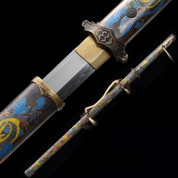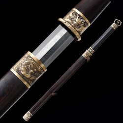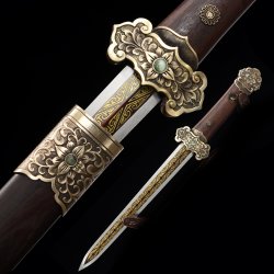 This battle-ready natural han dynasty swords is made of pattern steel, designed to be perfect for practical Chinese martial arts training. The blade is specially treated to achieve optimal levels of durability and hardness. Traditional design with modern construction, this is not your average wushu sword. It is a weighty sword with a hand-sharpened edge for practical use, or for serious collectors and Chinese history enthusiasts. It comes with an exquisite hardwood scabbard and high-quality fittings. The sword is great for tai chi, kung fu, wushu, cutting practice, and display. It's durable enough for trees and bamboo. Each sword is individually handmade so specifications vary slightly from sword to sword. notes: not include stand. ...