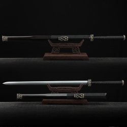 This battle-ready natural han dynasty swords is made of pattern steel, designed to be perfect for practical Chinese martial arts training. The blade is specially treated to achieve optimal levels of durability and hardness. Traditional design with modern construction, this is not your average wushu sword. It is a weighty sword with a hand-sharpened edge for practical use, or for serious collectors and Chinese history enthusiasts. It comes with an exquisite hardwood scabbard and high-quality fittings. The sword is great for tai chi, kung fu, wushu, cutting practice, and display. It's durable enough for trees and bamboo. Each sword is individually handmade so specifications vary slightly from sword to sword. notes: not include stand.
