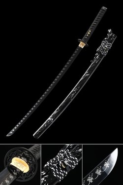 Handmade Japanese Samurai Sword High Manganese Steel With Black Blade