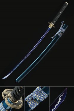 Handmade Japanese Katana Sword Spring Steel With Blue Blade And Black Scabbard