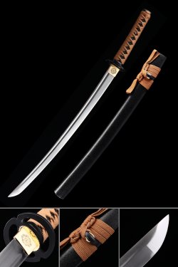 Handmade High Manganese Steel Sharpening Real Japanese Wakizashi Swords With Orange Scabbard