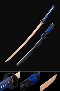 Handmade Rosewood Blade Unsharpened Katana Sword With Cyan Scabbard And Iron Tsuba