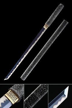 Manganese Steel Ninjato with Blue Lightning Saya and Hamon Blade - Full Tang Ninja Sword