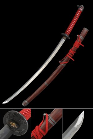 The sword is solid but nimble with a more slender blade,but the red black leather handle with the solid suba and the cool red blade combined with the flawless wood saya makes this a piece to just show off. It's a beaty.