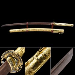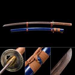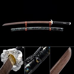 - Natural wooden blade, brown scabbard, iron tsuba.