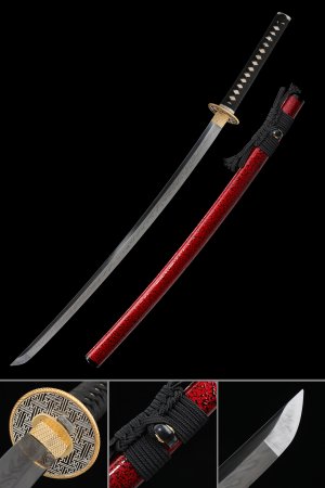 Overall length is 41 inches and shipping weight is 4 lbs, packaged in a 43 x 4 x 4 inch box. Each piece is individually assembled by hand, so minor variation in grain pattern and hamon profile is expected and inherent to the process. Sword stand not included. Browse the full Real Japanese Sword collection for additional koshirae configurations.