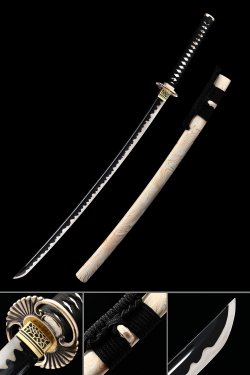 The blade on this katana is forged from manganese steel and given a black finish that deepens the visual contrast of the hand-finished hamon line running along the edge. The raging fire hamon pattern - irregular and wave-like - gives the blade its most striking detail, visible from tip to base. At 40.5 inches overall with a 1.26-inch blade width, the proportions reflect traditional katana geometry. Browse our full range of Black Katana Sword options to compare blade finishes and steel types.