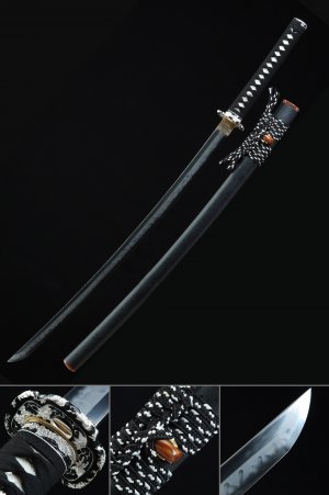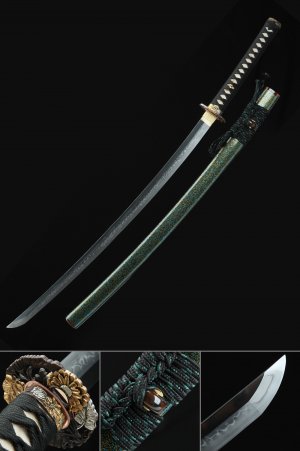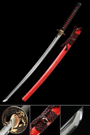 T10 Carbon Steel Katana with Clay Tempered Blade, Real Hamon & Tiger Tsuba