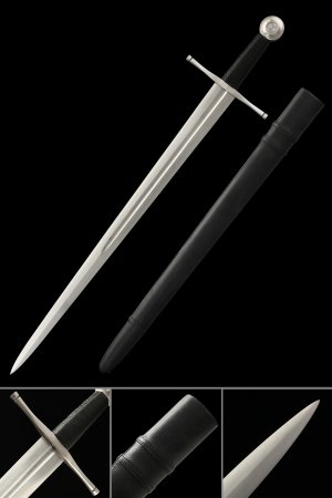 In the annals of time, where valor meets legend and where craftsmanship dances with destiny, there emerges a weapon that encapsulates the spirit of an era. Enter the realm of chivalry and heraldry with our hand-forged medieval European sword, a testament to the age of knights and tales sung by minstrels under the moonlit sky. Key Features: Manganese Steel Full Tang Blade: At the core of this historic masterpiece is its full-tang design, a symbol of exceptional craftsmanship and enduring strength. By seamlessly extending the blade through the length of the handle, it promises unwavering stability and a bond between blade and wielder that echoes through the ages. The blade, forged from high-performance manganese steel, stands sharp and r ...