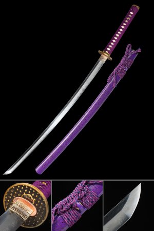 - Full-tang construction keeps the blade locked into the handle, wrapped in teal cord over real white samegawa rayskin for a firm, traditional grip at 2.8 lbs total weight.