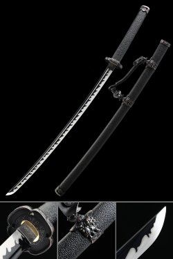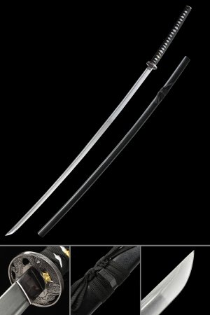 Black Nodachi Sword - Handcrafted 1060 Carbon Steel, 67-Inch Full Tang with Iron Tsuba