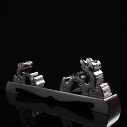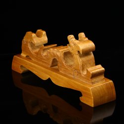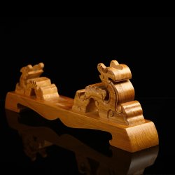 Sturdy Hardwood Composition: Carved from selected hardwood, the stand is robust and durable, ensuring it can support your sword with the grace and strength of the Kirin itself. Celestial Kirin Figures: Graced with the noble form of two Kirin, creatures of auspicious omens and guardians of righteous leaders, this stand is a beacon of good luck and peace. The natural warm tone of the hardwood is finished with a yellow patina, enhancing the stand's allure and creating a regal display for any sword. Efficient Assembly: Designed for convenience, the stand can be easily assembled, allowing your sword to take its prestigious place without delay. Universal Display: Tailored to accommodate swords of various eras and origins, it brings a tou ...