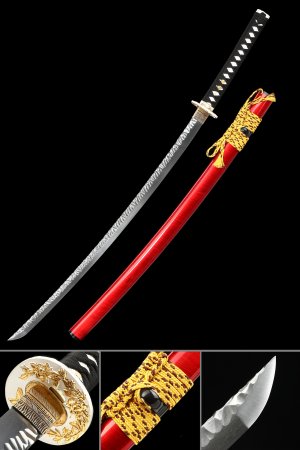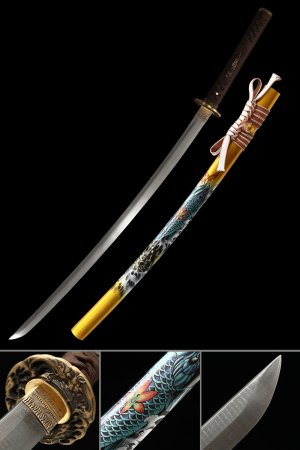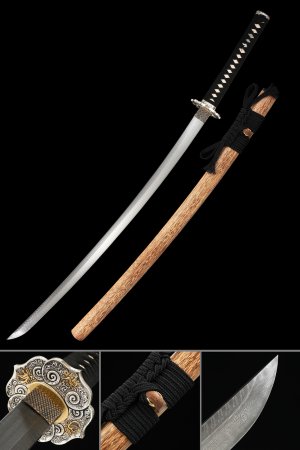 Key Features: Damascus Steel Full Tang Blade: At its core, this katana sword features a blade crafted from Damascus steel, a testament to the art of metallurgy. The blade's composition ensures remarkable strength and cutting prowess, making it a versatile tool for both artistic appreciation and practical use. The sharp edges of the blade elevate its functionality, while the distinctive patterns of the Damascus steel create a visual tapestry that tells a story of craftsmanship and dedication.