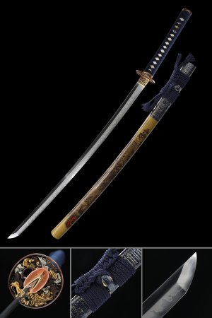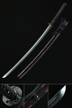 T10 Carbon Steel Katana with Clay-Tempered Hamon, Python Tsuba in Dark Brown Saya